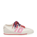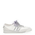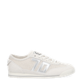- Wechselfußbett, für Einlagen geeignet, Logoprägung, Textilapplikation an der Schuhzunge mit Logodetails, markentypische „70s“-Logoapplikationen in silber-metallisiertem Leder, Ziernähte, raffinierter semitransparenter Textil-Look in Flechtoptik, 70er Retro-Look in Vintage-Optik, Offwhite Farbton: Cremiges Weiß