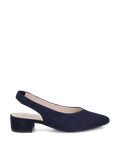 - Blockabsatz, Stretcheinsatz, atmungsaktiv, Slingpumps, mandelförmige Spitze, tiefdunkles Blau