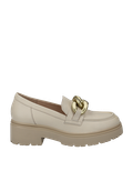 - SELECTED by YVONNE CATTERFELD, Wechselfußbett, für Einlagen geeignet, Blockabsatz, Plateausohle, Loaferapplikation mit Schmuckapplikation in Ketten-Optik (matt-gold), atmungsaktiv, „Best fitting“- Einlegesohle
