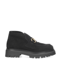 - Blockabsatz, goldfarbene Horsebit-Loaferapplikation, Warmfutter