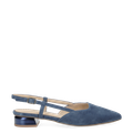 - silberfarbener Metallverschluss, Blockabsatz, Ziernähte, Stretcheinsatz, sommerlicher Sling-Pump, italienisches Design