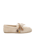 - Wechselfußbett, für Einlagen geeignet, 360° Boots-Schnürung, Docksider-Stil, Lederschnürsenkel, silberne Ösen, leichte und flexible Sohle, Schmuckapplikationen mit auf einer Seite Lederquasten und Herzmotiv-Würfelchen, andere Seite Holzperlen in verschiedenen Brauntönen, Vintage-Optik, italienisches Design, atmungsaktiv