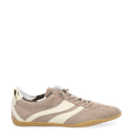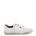 - Wechselfußbett im Leo-Look, für Einlagen geeignet, Einstiegschlaufe, Logoprägung, Logoapplikationen in Textiloptik, Zierlochung, Ziernähte, verspielte Schmuckapplikationen „Kirschen mit Blatt“ an der Schnürung, leichter Retro-Sneaker mit flexibler Laufsohle, Vintage-Optik: Oberfläche im Used Look, Offwhite Farbton: Cremig-graues Weiß