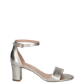 - Blockabsatz, Metallverschluss, schmaler Fesselriemen mit dezenter Schnalle, atmungsaktiv, festliche Metallic-Optik, Stretcheinsatz