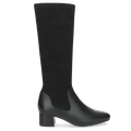 - Blockabsatz, Logoapplikation, Ziernähte, Schaft aus flexiblem Stretchmaterial, Langschaftstiefel