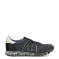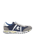 - Angenehm ruhige Blau-Grau-Farbtöne, stylischer Mesh-Look, Wechselfußbett, für Einlagen geeignet, Logoprägungen, Ziernähte, Logoapplikationen an den Seiten, Schriftzüge entlang der Sohle, gepolsterter Schaft, atmungsaktiv, moderner italienischer Design-Sneaker