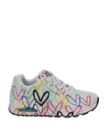 - Wechselfußbett, für Einlagen geeignet, Keilabsatz, Logoprägungen, gepolsterter Schaft, Zierlochung, Spread the Love: im ikonischen #Lovewall Design von James Goldcrown, innovative Air-Cooled Memory Foam Innensohle für individuelle Anpassung an die Form Ihres Fußes, atmungsaktiv für optimales Fußklima, Skech-Air®: luftgefüllte Zwischensohlen für extra Dämpfung beim Laufen
