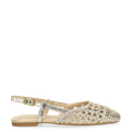 - Goldfarbener Metallverschluss mit Stretcheinsatz am Fersenriemen, Flechtoptik, ideal für Sommerlooks, Karree-Spitze